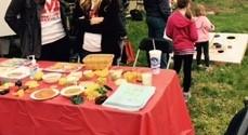 The NFSC Dietetic Interns represented the department at the 2015 UMCP Maryland Day on Saturday, April 25, 2015. The booth included a corn hole/ bean bag toss for children with a MyPlate-inspired activity book with crayons as a prize. All participants were winners! As children tossed bean bags, parents were able to get tear-offs on portion control and look at food models. The kids also liked food models. Based on give away the booth had over 500 visitors (kids + adults).
