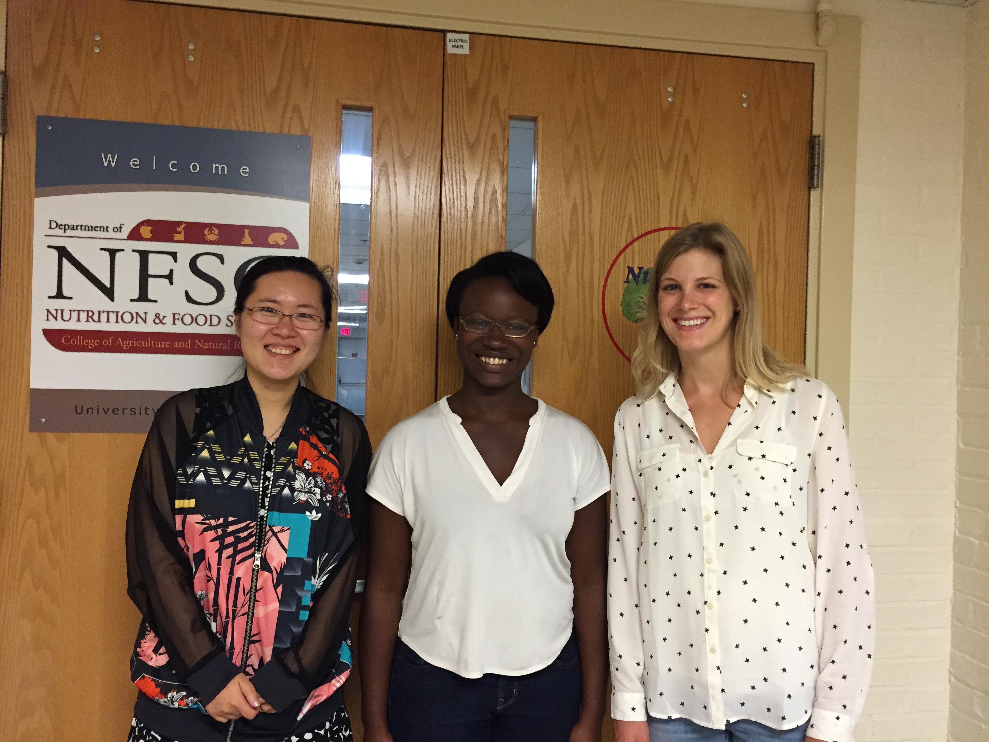 They are Zhiyuan Lou from Dr. Lee's lab (left), Andrea Gilbert from Dr. Tikekar's lab (middle), and Heather Dolan from Dr. Tikekar's lab (right).