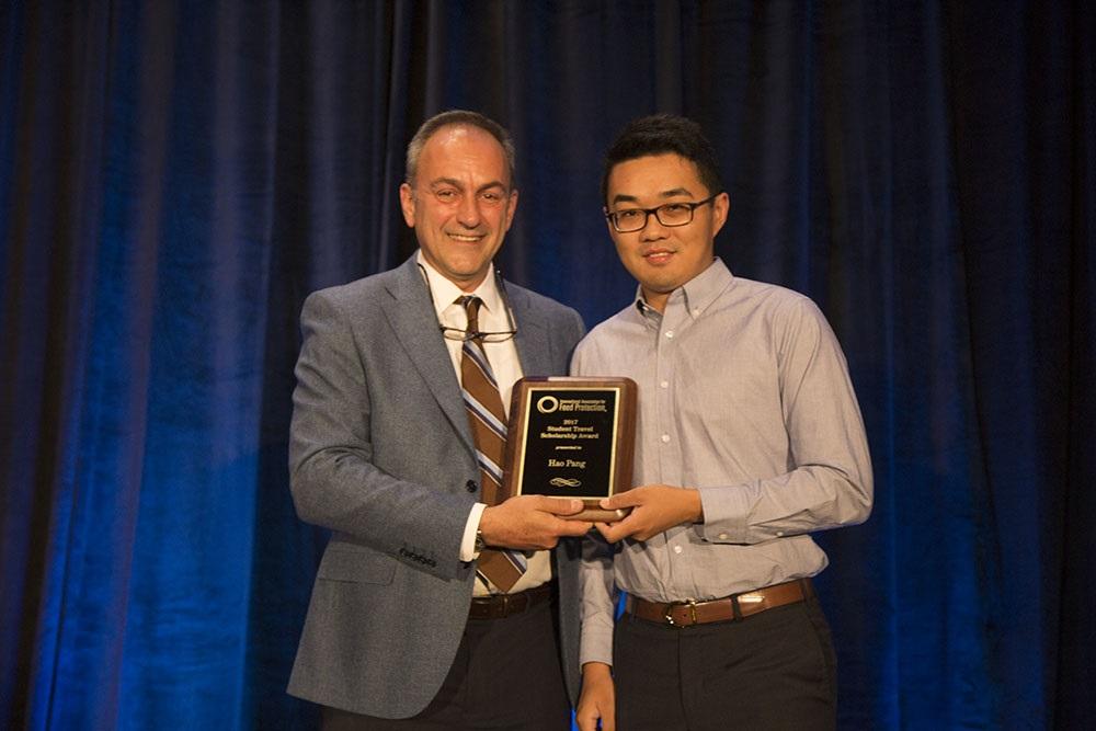 Congratulations to Dr. Hao Pang! Dr. Pang won the third place for the technical competition of the J. Mac Geopfert Developing Scientist Award at the International Association for Food Protection (IAFP) 2017 annual meeting that was held in Tampa, Florida in July, 2017. He also received the IAFP Student Travel Scholarship Award to attend and present his research at this meeting. Last year, he received the Developing Scientist Award (3rd place) in poster presentation competition at the IAFP annual meeting that was held in St. Louis, Missouri, in August, 2016. Dr. Pang graduated in Spring, 2017. Currently, he is working at the Center for Food Safety and Applied Nutrition (CFSAN) at the U.S. Food and Drug Administration (FDA), College Park, Maryland. Dr. Abani Pradhan is his advisor.