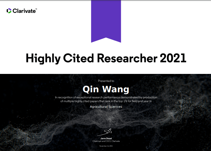 Dr. Qin Wang, a Professor in the NFSC department, is listed as a Highly Cited Researcher 2021. She is among this elite group recognized for her exceptional research influence in Agricultural Sciences, demonstrated by the production of multiple highly-cited papers that rank in the top 1% by citations for field and year in the Web of Science™.