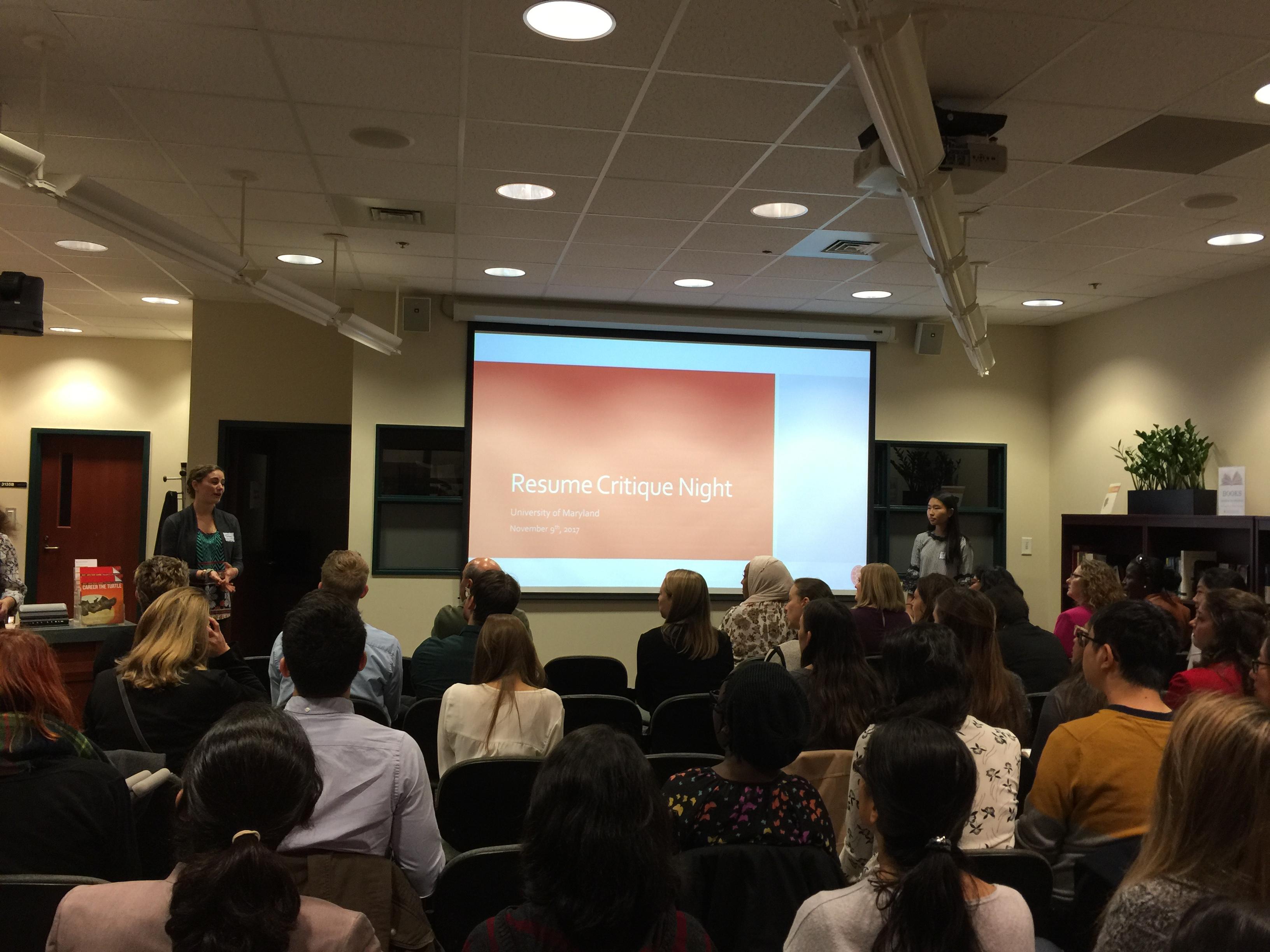 On November 9th, 2017, University of Maryland’s Food Science Club hosted its third annual Resume Critique Night at the Hornbake Career Center. Sixty students enjoyed a welcome reception before listening intently to the professionals’ introductions and career advice. Afterwards, the group broke into one-on-one resume critique sessions.