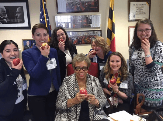 I had the pleasure of advocating for these bills with six others, including RD’s and dietetic interns. Legislators were happy and open to hearing our opinions on these bills. To my surprise, many legislators were already strong supporters of the bills and valued the importance of an RD. In addition to advocating for legislation, we invited delegates and senators to participate in the “Apple Crunch Challenge.” By taking a bite of an apple, legislators and MAND members joined together to show support for healthy eating and nutrition.
