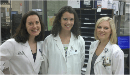Lyndsay Ames, center, shadowed dietitians at MedStar Harbor Hospital in Baltimore this summer.