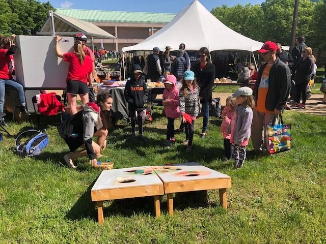 Half of the interns participated in the internship’s booth in Ag Alley where they worked with kids using food replicas to create their own ideal plate with their favorite foods from each food group. This activity illustrated having a balanced meal and portion control to the kids and their parents. A corn hole toss added to the fun.