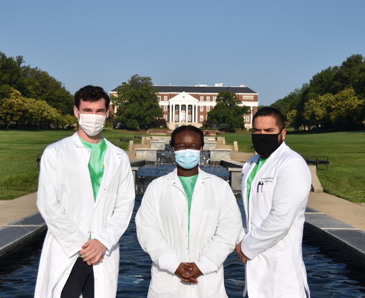 The UMD Food Science College Bowl team, from left to right: Stratton Wimsatt, Andrea Gilbert, and Abraham Moses Montemayor