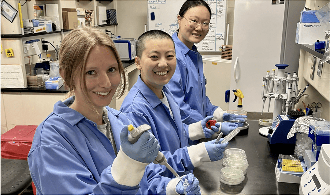 Part of the antimicrobial resistance research team from left to right PhD students Erin Harrelson and Qingyue Zeng and postdoctoral associate Dr. Mairui Gao